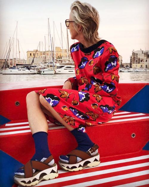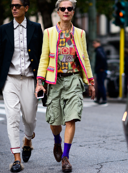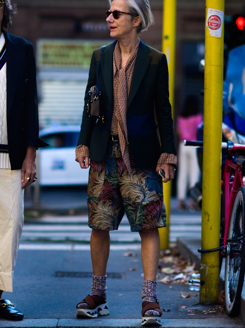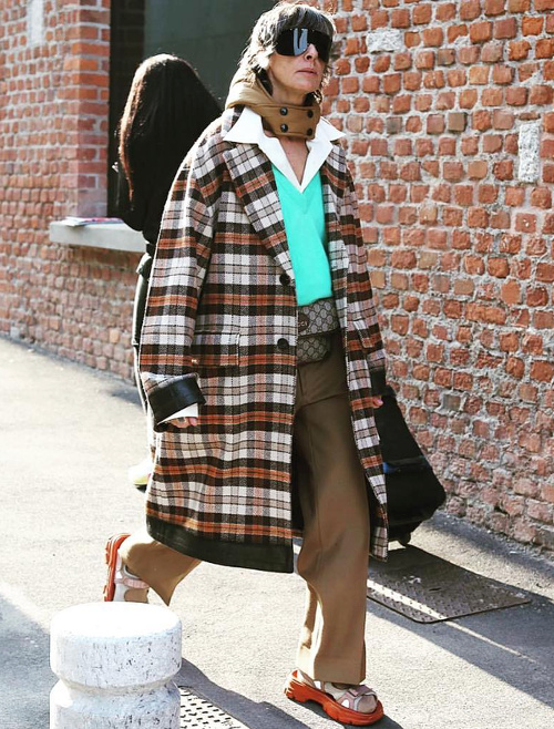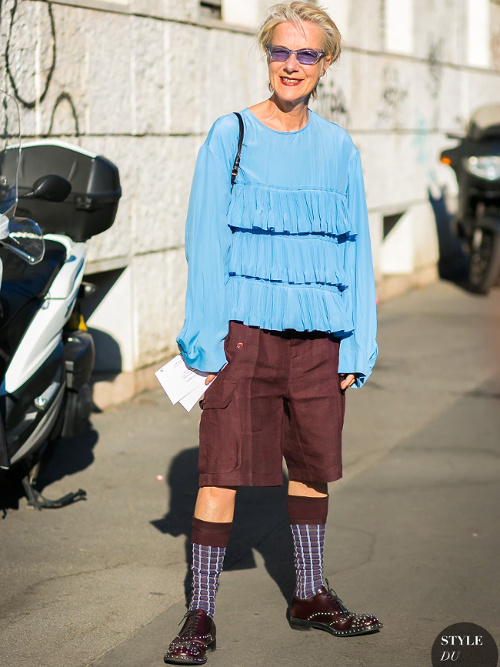 Le look de Ana Gimeno Brugada c'est vraiment quelque chose que je porterais, j'aime à peu près tout. Bettina Oldenburg j'aime les associations de couleurs, environ 30% de ses chaussures (juste pas les sandales, quoique, les semelles géantes j'adore), et autant j'adore les silhouettes bancales avec chaussures plates super mastoc (je pratique souvent), autant les bermudas j'ai un peu de mal, même si là aussi j'en pratique une version, disons, plus discrète. Mais elle a l'air tellement à l'aise avec que ça fonctionne.