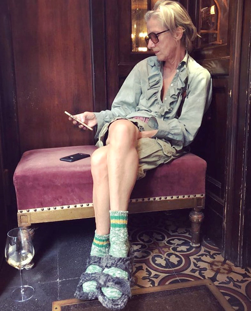 Ahah les chaussettes à mi mollet dans les sandales sabots portées avec des shorts, c'est si allemand ! Je criai au cliché jusqu'à ce que j'aille vivre en Allemagne... :) mais bon elle transcende ce look, on est loin de Jacques Chirac en vacances en sandales / chaussettes