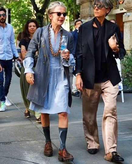 L'absence d'équilibre de la silhouette , les chaussettes récurrentes , les soques cela dérange mon sens du style mais cela montre aussi des personnalités fortes qui font le choix d'un autre message modesque ,plus arty et affranchi.