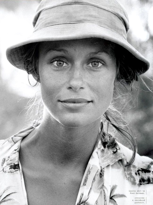 S'agit-il de l'avènement du bob en terre fashion ou de mon envie grandissante d'aller siroter un jus de papaye sur une plage de sable fin ? Toujours est-il que ces derniers temps, ce portrait de Lauren Hutton en bob et chemise hawaïenne m'obsède. Il faut dire qu'il en émane quelque chose de diffus, de joyeux, de baroudeur, de suavement naturel, de non premier degré. Entre les cheveux blonds de la jeune femme noués en chignon flou sous un chapeau pour pêcheur gentiment bourru, son corps doré dissimulé au creux d'une chemise masculine et les fines lignes autour de sa bouche, tout dans cette image célèbre une vision rafraîchissante de la sensualité…
