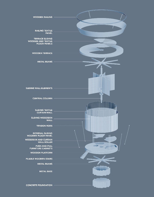 À mi-chemin entre une création de Jules Verne et un fantasme d'enfant, la Casa Ojalá imaginée par l'architecte Beatrice Bonzanigo a pour ambition d'offrir aux nomades CSP+ une version gentrifiée du traditionnel mobile home. Ici, pas de carcasse en aluminium ou de look déprimant, mais un vaisseau immobile constitué de bois et de poulies permettant 20 configurations différentes. Désirant abolir les frontières entre intérieur et extérieur, cet espace pour globe-trotteur utopiste a pour objectif de s'adapter aux besoins de ses propriétaires et leur permettre de vivre au coeur d'espaces sauvages en parfaite osmose avec les éléments, tout en profitant de l'autonomie offerte par la présence de panneaux photovoltaïques, d'un système de collecte d'eau et d'une fosse septique.