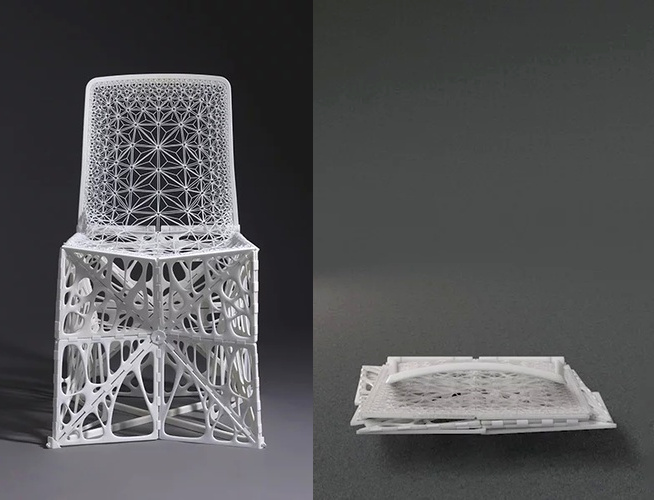 Pourquoi faire basique et esthétiquement décevant lorsque l'on peut faire subtilement sophistiqué ? C'est la question que l'on se pose en comparant le prototype de chaise pliable conçu par Patrick Jouin à celles peuplant les salles de meeting. Né de l'association entre impression 3D et design génératif (une technique qui permet de "générer des formes dont on détermine le comportement plutôt que de les dessiner directement"), le design arachnéen de ce modèle laisse en effet rêveur. Et ce d'autant plus lorsque l'on apprend que la fabrication de cette chaise ne génère presque aucun déchet, celle-ci se faisant de manière quasi organique.