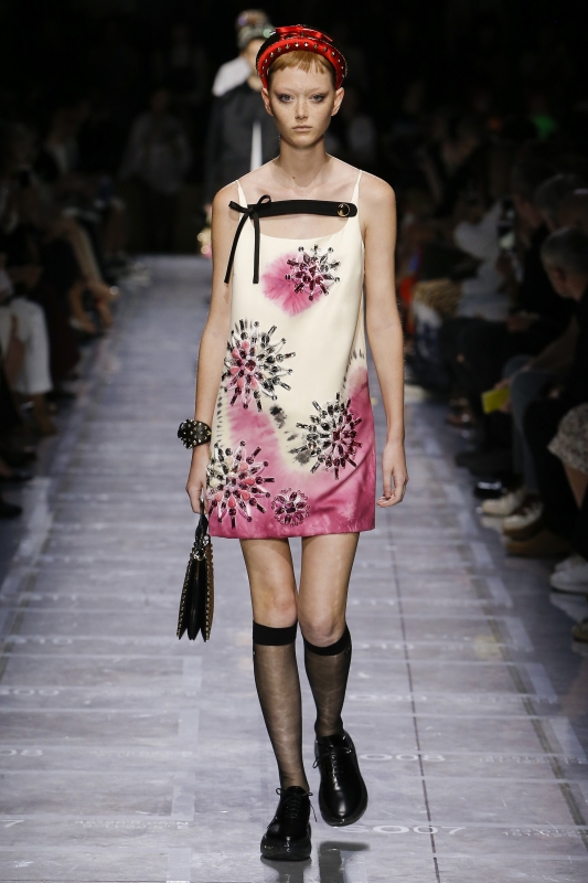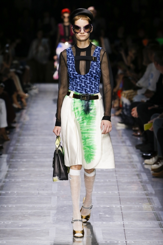 La nécessité de cette mutation n'a d'ailleurs pas échappé à Miuccia Prada qui, à l'occasion de sa collection printemps/été 2019, injecta au tie and dye une dimension inédite via une poignée de jupes plissées frôlant chastement le genou. Quasiment bourgeoises, ces cimaises offrent un twist inattendu aux effluves subversives émanant du tie and dye (voir ici et là).