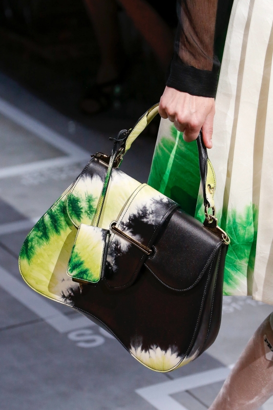 En apposant cet imprimé sur une pièce tout sauf sportswear/casualwear (jupe, mini robe de cocktail ou sac) qu'elle incorpore au sein un look "girly-cérébral", la créatrice italienne ouvre au tie and dye des horizons nouveaux, à des années-lumière du revival Woodstock.