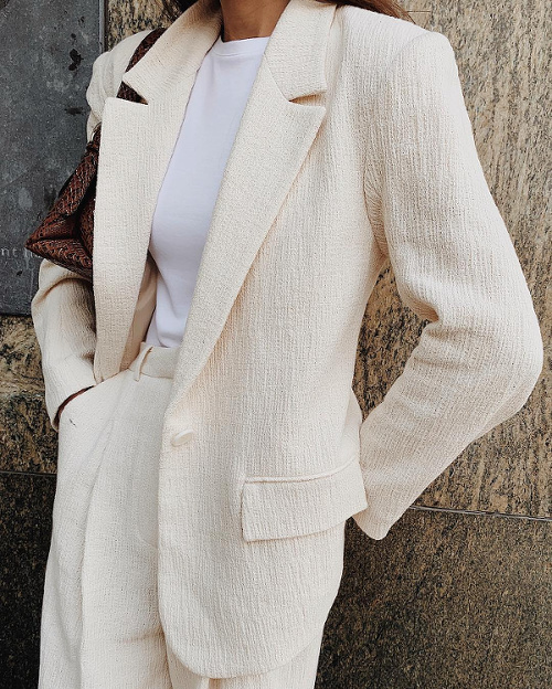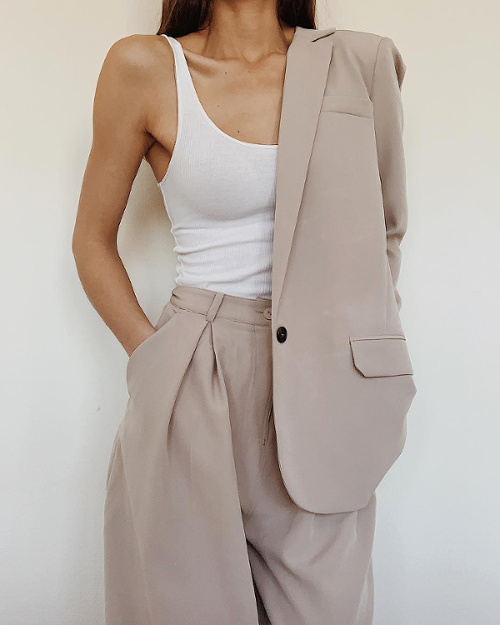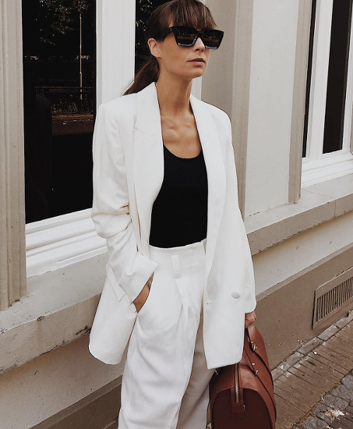 Jouer sur les contrastes de volumes en mariant ses pantalons masculins ultra larges avec un top cropped ultra moulant (voir ici et là). Associer ses chemises blanches au mix jean bleu délavé taille haute/ceinture en cuir noir (voir ici). Préférer aux créoles classiques des modèles jouant avec la matière (voir ici). Contrebalancer le volume oversize d'un manteau au contact d'un sac à main aux dimensions mesurées (voir ici). Dérider ses costumes minimalistes portés à même la peau via un collier imposant (voir ici). Choisir ses costumes dans des tissus subtilement inattendus (voir ici). S'autoriser à twister un simple jean noir en optant pour une blouse blanche joyeusement rétro girly (voir ici). Marier vert lichen et caramel (voir ici).