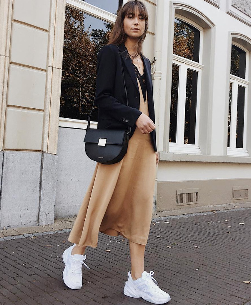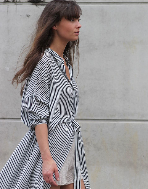 Offrir une dégaine urbaine à ses robes nuisettes en leur mariant blazer et baskets (voir ici). Contredir la nature troisième âge des harmonies de beiges en leur associant jean délavé et multiples chaînettes dorées (voir ici). Opter pour des robes chemises fusionnant à la perfection casualness, twist féminin et minimalisme (voir ici). Alléger ses looks dès que possible en chaussant une paire de sandales dégagées (voir ici et là). Transformer ses robes fluides en top drapé (voir ici). Injecter une légère dose d'humour à une tenue parisienne romantique en chaussant de banales tongs noires (voir ici). Apaiser un short en jean blanc destroyed en le portant avec un long blazer en lin blanc (voir ici). Faire de ses robes pouvant s'ouvrir sur le devant des tops à part entière (voir ici et là).