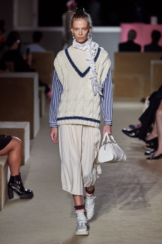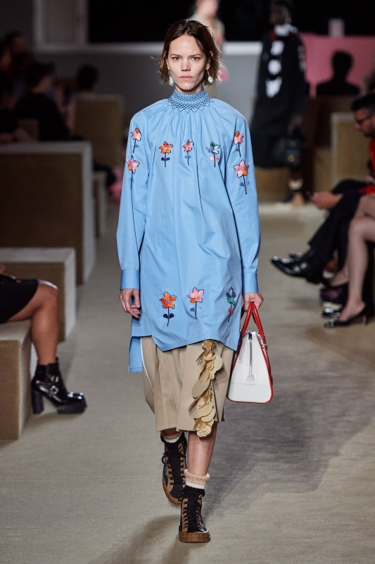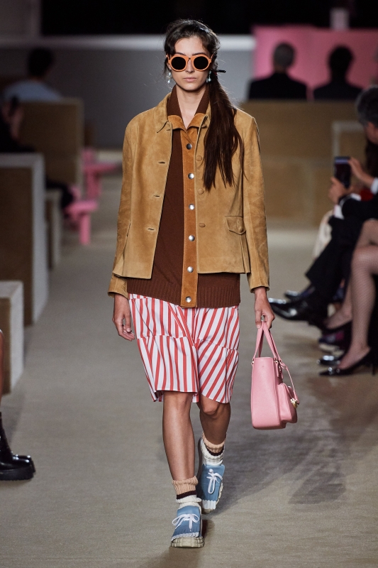 Moins cérébrale que d'ordinaire, la collection Prada Resort 2020 présente une vision adoucie de la muse de la griffe italienne, comme si la créatrice avait eu envie d'offrir aux femmes une pause acidulée où la simplicité remplacerait les partis pris conceptuels. Passage en revue des points marquants de ce défilé new-yorkais…