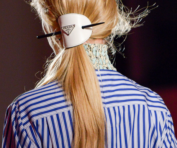 Ce trench aux carreaux esprit ménagère sixties a tout de la pièce forte déclinable à l'infini. L'association rayures rouges verticales/daim camel/lainage marron/touche de rose layette se révèle des plus enthousiasmantes, la sophistication du rose venant pimenter la douceur bohème du camel et l'aura country des rayures (voir ici). En mariant découpes structurées, rayures verticales et motifs fleuris, Miuccia Prada parvient à rendre ces derniers suavement cérébraux (voir ici). Le K-Way s'offre un nouveau dress code à base de jupe midi et de chemise longue (voir ici et là). Les combos chromatiques de certains tandems baskets/chaussettes s'avèrent particulièrement inspirants. Oui aux juxtapositions rouge/rose/blanc/caramel ou bleu ciel/blanc/jaune pâle/beige ! (voir ici et là) Les jupes midi corolles de la collection devraient donner naissance à de bien jolies silhouettes (voir ici). Après le come-back de la barrette, c'est aujourd'hui au tour d'une autre friandise capillaire nineties de faire son grand retour… (voir ici). Must have des années 2000, le sac bowling fait également une réapparition (voir ici). Relativement ample et un brin épais, le pull sans manches col V pourra sans mal venir twister nos tenues girly ou casual/classique.