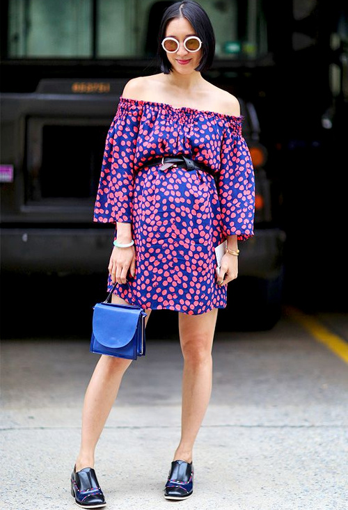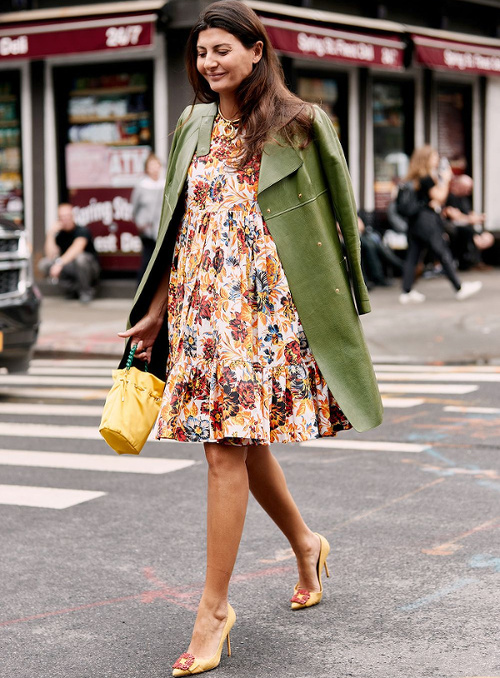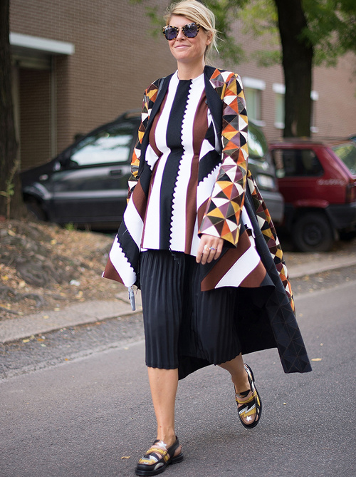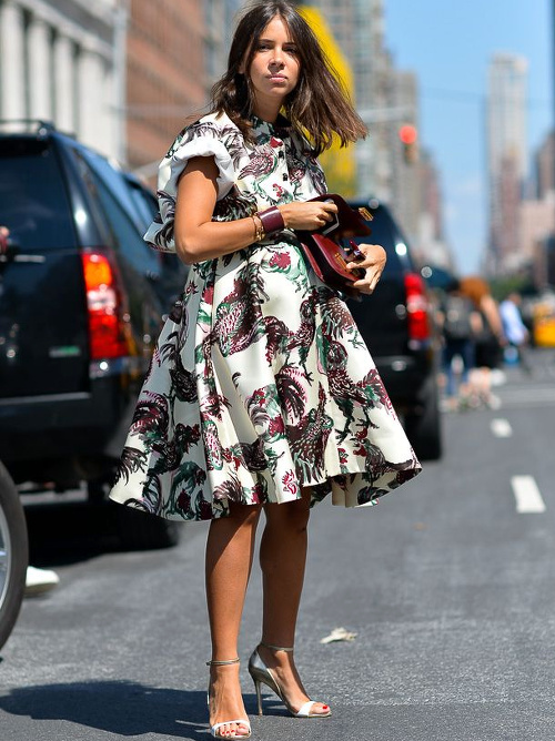 Maîtriser l'ampleur d'une robe longueur genou en la portant jambes nues avec une paire de sandales ou d'escarpins dégagés à talons (voir ici et là). Les week-ends, délaisser le duo jogging/tee-shirt au profit du look pyjama short chic/trench/baskets (voir ici). Twister ses robes en leur adjoignant un tee-shirt noué sur le devant (voir ici). Continuer à miser sur le tandem trench/robe noire moulante pour se sentir chic (voir ici). Déjouer le potentiel no look du trio tee-shirt/jean/baskets en optant pour un manteau imprimé (voir ici et là). Continuer à s'amuser avec la mode (voir ici). Oser l'ultra moulant (voir ici). Ceinturer ses robes au dessus du ventre (voir ici).