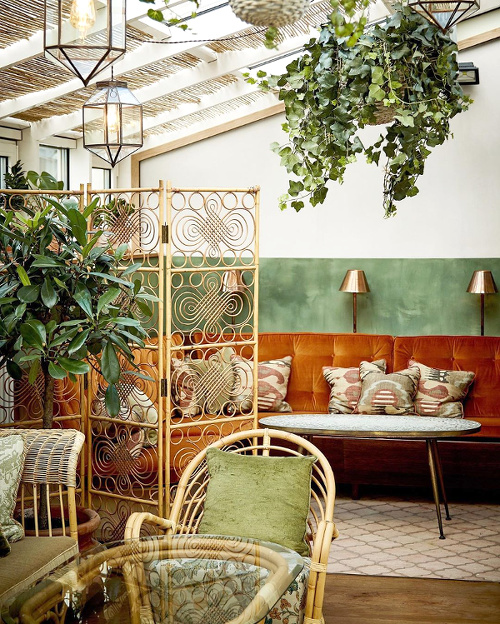 J'aime, entres autres, l'abat jour aux fines lamelles et l'ajout de plantes un peu partout (quand c'est possible) et les mélanges de vert et couleur pain d'épice.