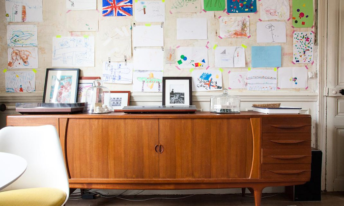 Encadrer une photo en couleur à la normalité mystérieuse (voir ici). Redonner une chance à de vieux fauteuils élimés en les plaçant dans une pièce claire et lumineuse (voir ici). Opter pour un abat-jour en fines languettes de bois clair afin d'adoucir un espace un brin austère (voir ici). Investir dans une chaise Cesca afin de célébrer les 100 ans du Bauhaus (voir ici). Fleurir la salle de bain (voir ici). Marier vert lichen et mordoré (voir ici). Égayer un espace monochrome blanc au contact de plantes luxuriantes (voir ici et là). Oser les éléments de déco susceptibles de ne plaire à personne d'autre que vous (voir ici). Offrir une dimension conceptuelle à la multitude de dessins d'enfant s'entassant dans les tiroirs en en tapissant un mur entier (voir ici). Préférer de temps à autre les fleurs séchées aux fleurs fraîches (voir ici). Opter pour une banquette/lit à roulettes afin de faire évoluer à l'envie l'agencement d'une grande surface (voir ici et là).