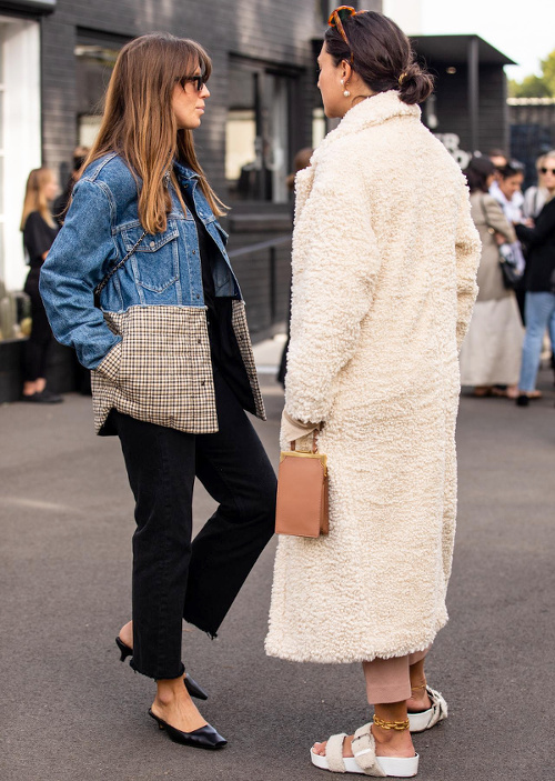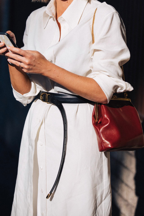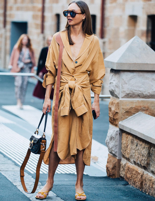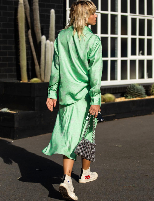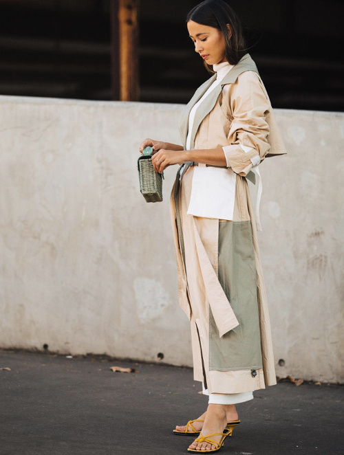 La jupe droite en satin façon sous-jupe rejoint la grande famille des pièces de lingerie passées du boudoir à la rue (voir ici). Les robes romantico-chastes apprécient le twist offert par une paire de boots de cow-girl (voir ici). Jaune et caramel sont décidément faits pour s'entendre (voir ici). Le sac lilliputien revient à la raison et s'associe à un modèle pouvant contenir plus qu'un cure-dent (voir ici). Les vestes sahariennes se ceinturent taille haute et gagnent ainsi en sophistication (voir ici). La nonchalance urbaine sied bien aux ensembles en satin (voir ici). Le sac à main s'essaie au format rectangulaire vertical (voir ici). Vert gazon et violet ne sont pas vraiment faits pour la vie de couple (voir ici). Le col montant zippé porté ouvert injecte une dimension sportswear aux vestes l'accompagnant (voir ici). Le duo godillots/robe mi-longue chic continue de faire mouche (voir ici et là). A force de manquer d'évidence, certains vêtements pénalisent l'allure de leur propriétaire (voir ici). Le long gilet en maille reste l'allié cosy des slip dresses (voir ici). Frais et délicat, le mix blanc/beige/lichen/jaune donne envie d'être reproduit à l'infini (voir ici).