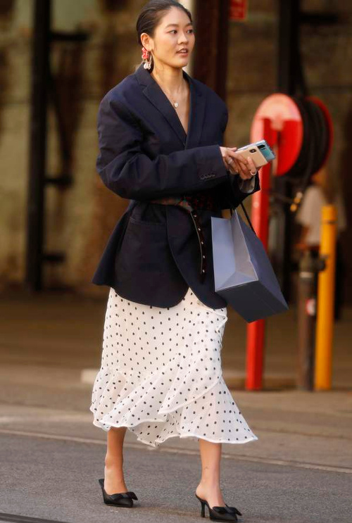 Une tenue outrageusement monacale peut être sauvée par une paire de lunettes de soleil fantaisie contrastant avec son ADN austère (voir ici). Associer blazer vichy et santiags s'avère être une brillante idée (voir ici). Les coloris camel/beige/grège continuent de faire le miel des modeuses (voir ici). Les sandales et autres mules se veulent plus légères que jamais (voir ici, ici, ici et là). S'ils sont actuellement tendances, les logos ostentatoires et autres monogrammes n'en demeurent pas moins vulgaires (voir ici, ici, ici et là). Les ceintures se portent longues (voir ici). Contrairement à ce que certaines peuvent penser, tous les imprimés ne sont pas appelés à se mixer… (voir ici) La tendance "panier en osier" se complexifie (voir ici, ici, ici et là). Le duo longue robe/bottes fronçant sur le mollet a fâcheusement tendance à alourdir la silhouette (voir ici). Le total look vichy a du mal à convaincre (voir ici et là).