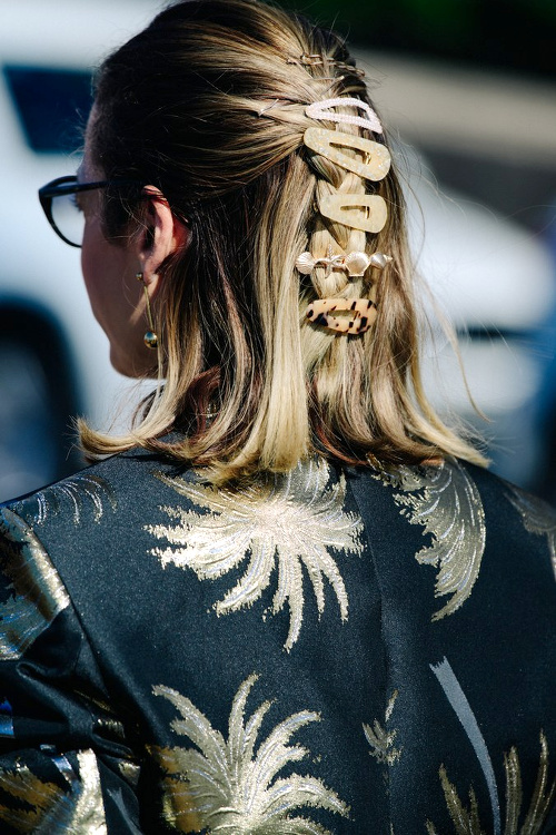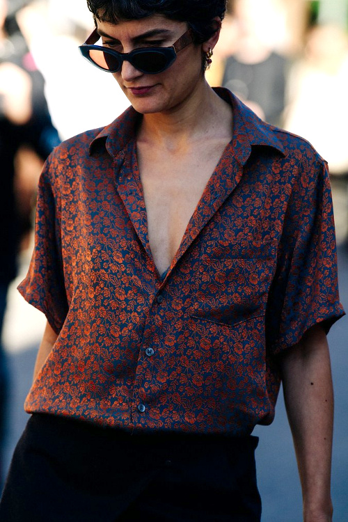 Travaillé moitié cuir/moitié osier, le sac rond se révèle être le compagnon idéal des longues robes noires estivales (voir ici). Les costumes de 2018 (et autres blazers) tentent de se réinventer en se ceinturant taille haute. Le perlage en plastique séduit encore et toujours les modeuses en quête de fantaisie régressive (voir ici, ici et là). La jupe-culotte s'offre une dégaine contemporaine (voir ici). Les chemises dhomme continuent de faire des merveilles sur les femmes (voir ici). Le gimmick "accumulation de barrettes" n'a de cesse de faire de nouvelles victimes (voir ici). Les pièces imprimé seconde peau signées Marine Serre font de plus en plus d'adeptes (voir ici). La chaîne de lunettes pourrait bien être sur le point de muter en accessoire trendy (voir ici). Téléscoper sweat étroit et longue jupe fleurie se révèle souvent être une bonne idée (voir ici). Le sac seau n'en finit pas de se réinventer (voir ici, ici, ici et là).