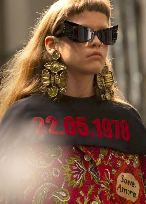 Rome, 28 mai 2019, musées du Capitole. Le dernier opus Gucci Resort est dévoilé devant un parterre d'happy few. Un opus "fusion" qui s'avère être dans la lignée des récentes collections d'Alessandro Michelle, à la différence près que le créateur décida cette fois-ci de ponctuer certains de ses modèles de détails militants. Utérus brodés, date de la légalisation de l'avortement en Italie ("22.05.1978") et inscriptions telles que "My Body My Choice" viennent ainsi attirer l'oeil du spectateur et fournir aux critiques de mode de la matière pour leurs papiers…