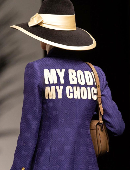 Autrement dit, si Alessandro Michele décide de militer pour l'avortement, pas de soucis, mais qu'il le fasse avec panache au sein d'une collection sublime et non pas en thermocollant à la va-vite une date sur le haut d'une cape ou un slogan sur le dos d'une veste. Stop à la facilité et au buzz militant/marketing : la mode se meurt des prises de positions exonérant leurs auteurs de l'excellence que l'on attend d'eux...