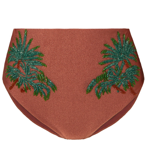 Marque mythique de notre enfance, K-way applique sa charte graphique à l'univers du maillot de bain pour nous livrer . Celles n'ayant pas les moyens de noyer 345 euros dans un maillot de bain Marysia se réjouiront de la propension d'H&M à . A l'instar de certaines combinaisons de ski davantage faites pour parader sur les trottoirs déneigés de Courchevel que pour descendre les pistes, les créations de Johanna Ortiz semblent bien plus adaptées aux cocktails en bord de piscine qu'aux plongeons en eau salée… (voir ici, ici et là). Le maillot de bain noir une pièce continue de se réinventer. D'ennuyeux, il passe ainsi à sculptural, afin de transformer celle qui s'y glisse en déesse nineties (Haight). L'esprit sportswear souffle sur les bikinis et transforme les fines bretelles des tops en dos couvrant les omoplates (voir ici). Alors que l'on connaissait Faithfull The Brand avant tout pour ses robes fleuries produites en Indonésie par des artisans locaux, c'est désormais au tour de ses bikinis de faire tourner la tête des influenceuses. Et si leurs propositions smockées ne sont pas forcément très flatteuses (voir ici, ici et là), les modèles triangles à fleurettes se révèlent quant à eux aussi frais qu'efficaces (voir ici et là). Le gimmick de la fronce suivant la ligne des fesses laisse songeur (LoveShackFancy). Jouer sur les effets d'optique dans le but de flatter la silhouette peut parfois mener à de regrettables excès, comme nous le prouvent les échancrures - dignes d'une mauvaise série B - des maillots Myra et Rudi Gernreich. Le tie & dye s'impose comme l'un des imprimés star des plages. On note que l'on délaissera les modèles sexy alambiqués au profit de maillots sobres mettant en valeur ses circonvolutions délavées (Anthropologie). Les culottes de maillot de bain taille haute remontent sensiblement vers les côtes pour se faire plus couvrantes que jamais (Mara Hoffman, Verdelimon, Zimmerman). Après avoir colonisées mocassins griffés, revers de blazers et autres tee-shirts branchés, les broderies investissent aujourd'hui l'offre swimwear. C'est ainsi que chez Stella McCartney, l'alliance entre découpes subtilement modernes, bleu marine classique et broderies florales donne naissance à un modèle ravissant et équilibré, tandis que chez Patbo les palmiers brodés sur cette culotte chocolat au lait se révèlent être du plus bel effet.