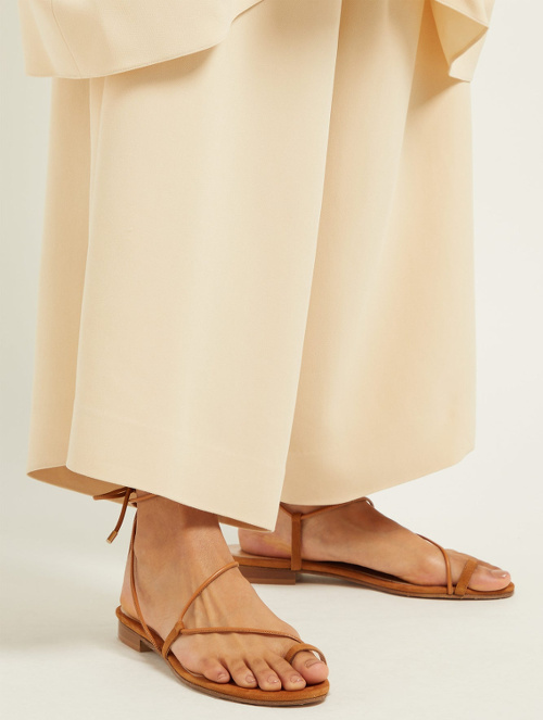 Entre lacets fins, brides délicates, coloris doux et semelles quasi imperceptibles, bon nombre de sandales de l'été 2019 ont fait le choix de la simplicité. Une simplicité élégante, légère, chaussant le pied de presque rien et permettant à l'esprit de s'apaiser après un hiver stylistiquement chargé. Oubliés ainsi clashs d'imprimés indigestes et volumes indomptables charriés par l'offre prêt-à-porter : tout n'est ici que zénitude et néo-chic intemporel. Un appel à la frugalité shoesesque brillamment illustré par Emme Parsons, dont les sandales fabriquées en Toscane allient efficacement modernité, épure, confort et subtilité (voir ici, ici, ici et là), mais aussi par la griffe Studio Amélia.