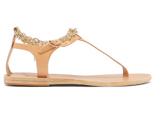Ce type de sandales (voir ici et là) se porte réellement avec tout. Celles-ci "upgraderont" ainsi les , sophistiqueront les robes liquettes et allégeront les robes midi (voir et ) et les combinaisons-pantalons roulottées sur la cheville. On pensera simplement à éviter les modèles dont les lacets montent au-dessus de la malléole si l'on a tendance à gonfler des mollets.