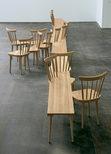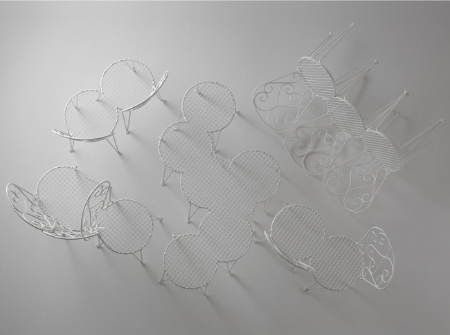 Oublié le banc rectiligne brillant par son inconfort et amenant à percevoir son voisin comme un intrus gênant : sous l'impulsion des fondatrices du studio de création Kraud, celui-ci mute en une arborescence insolite incitant aussi bien à la discussion impromptue qu'au relâchement des dorsaux. En agglomérant littéralement l'assise de chaises traditionnelles à celle d'un banc minimaliste, ces Allemandes plaçant au coeur de leur recherche le concept de fusion entre ancien et innovation créent ici un élément insolite qui réjouira les neurones de ceux qui, au fil de leurs déambulations, rencontreront ces structures faussement familières. On note au passage - avec un plaisir non dissimulé - que le "Stuhlhockerbank" a donné naissance à diverses variantes ne manquant pas d'espièglerie, à l'instar de ce banc mutant mélangeant le fer ajouré à d'élégantes chaises de jardin, mais aussi du Hockerbank, un banc aux allures de confortable mille pattes…