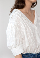 La blouse se glissera dans le short. On pourra accompagner le bracelet vert d'eau de quelques fins joncs dorés. Le chapeau cloche en paille permettra de jouer avec la tendance "bob" sans prendre trop de risque.