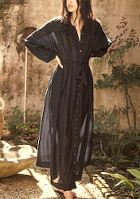 Pensé pour une journée farniente passée au sein d'une immense propriété du Luberon, ce look permettra - grâce à sa longue robe sobrement translucide - de se sentir à l'aise aussi bien dans le rôle de la tante servant joyeusement de la pastèque fraîche à ses innombrables neveux et nièces que dans celui de la sublime quadra passant l'été dans la famille de son nouvel époux. Les teintes de la couverture du format poche de "La ferme africaine" matchant parfaitement avec l'ensemble de la tenue, il serait dommage de ne pas abandonner son iPhone pour s'évader avec Karen Blixen. La délicatesse du collier viendra contrebalancer les imposantes brides des Birkenstock.