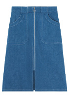 Le foulard se portera en bandeau sur les cheveux noués en chignon bas. On fera blouser le tee-shirt dans la jupe. Les sandales à talons permettront de rééquilibrer la silhouette potentiellement tassée par la longueur genou de la jupe.