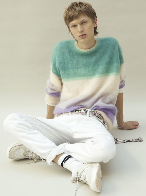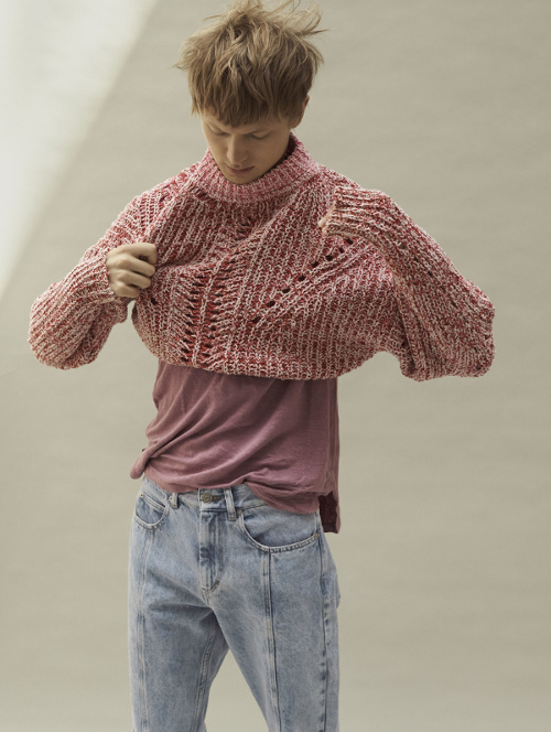 Préférer un dégradé aquarellé aux motifs tie and dye habituels (voir ici). Accompagner ses jeans javellisés d'un pull en grosse maille chinée (voir ici).