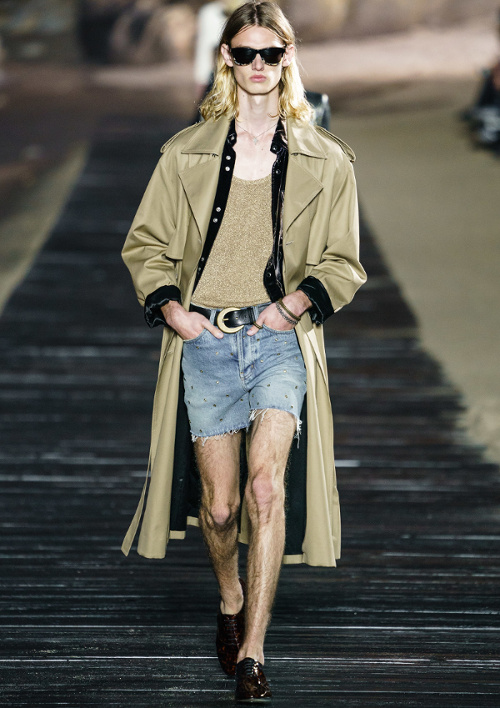 En revanche, le look Saint Laurent trench + short, non. En vrai tu as juste l'air d'un pervers à poil sous son trench qui va traîner dans les parcs...