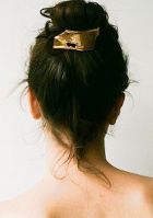 Le bijou de cheveux permettra d'upgrader n'importe quel chignon haut réalisé à la va-vite. Le body moulant créera un contraste flatteur avec le short légèrement ample. Un très fin bracelet de cheville doré complètera joliment ce look.