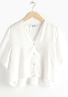 Le foulard se nouera en bandeau dans les cheveux. La robe se traitera comme un top à part entière et se portera déboutonnée jusqu'au niveau des hanches. Elle pourra se nouer sur le devant, mais aussi se glisser sur le devant du short.