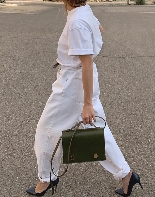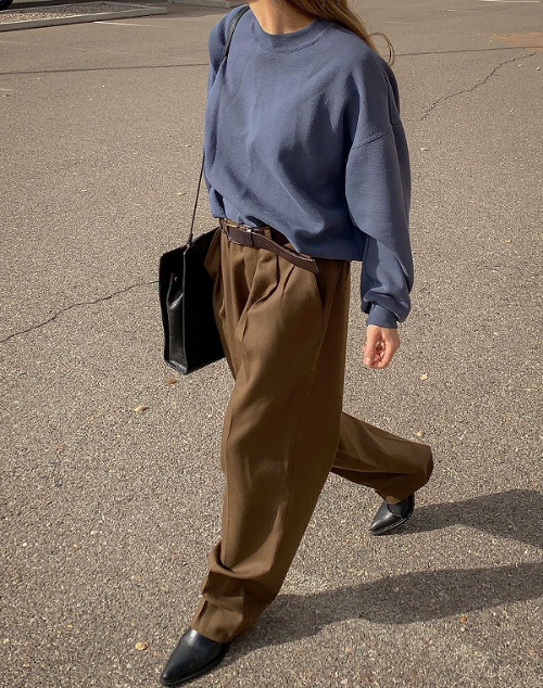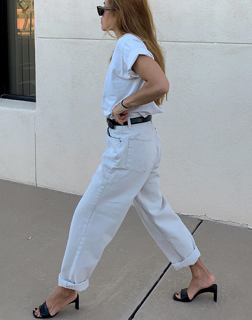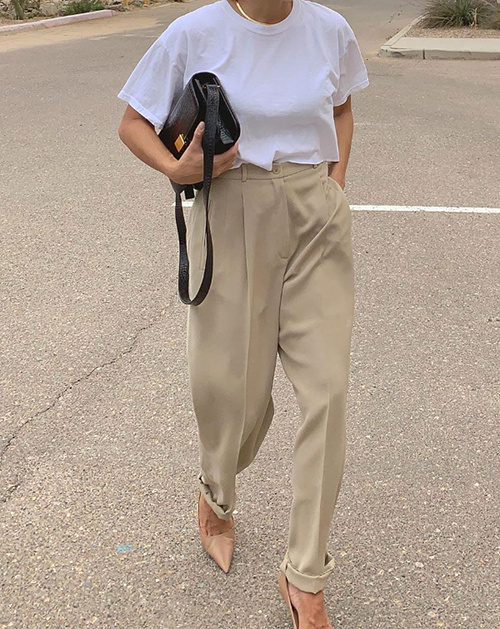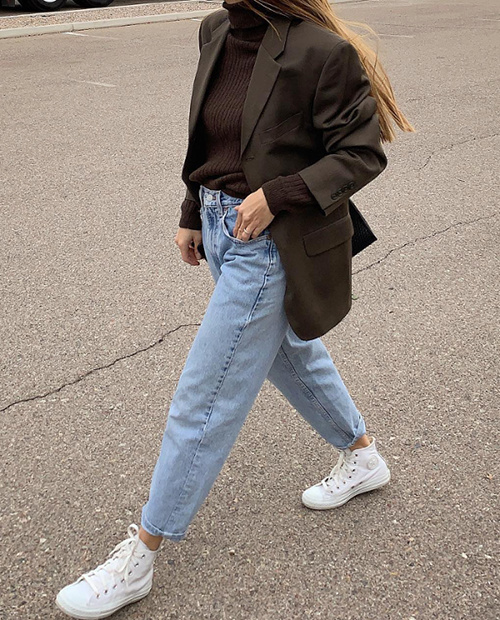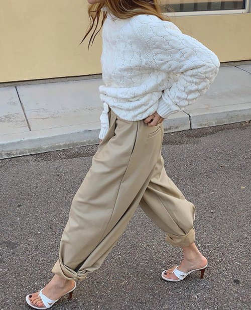 Faire du jean baggy la pierre angulaire de sa garde-robe (voir ici). Associer collier rigide et fine chaîne fluide (voir ici). Alléger le duo pull cosy/pantalon large à pinces en dévoilant le pied au maximum via une paire de mules (voir ici et là). Mixer les styles tout en préservant l'harmonie des teintes (voir ici). Préférer le pantalon à pinces en cuir au slim en cuir stretch (voir ici). Rendre presque intemporel un look sportswear en le travaillant en beige et blanc (voir ici). Contrebalancer volume et matière fluide/loose via le port d'un petit sac rigide (voir ici). Injecter un twist "working girl" au tandem jean mom/converses blanches montantes en lui associant blazer légèrement oversize et pull col roulé (voir ici).