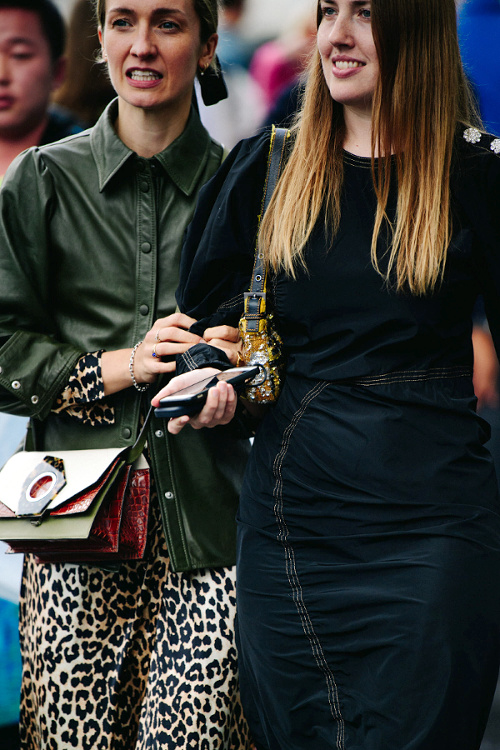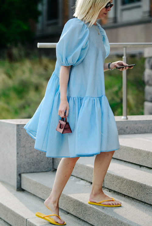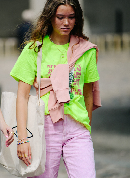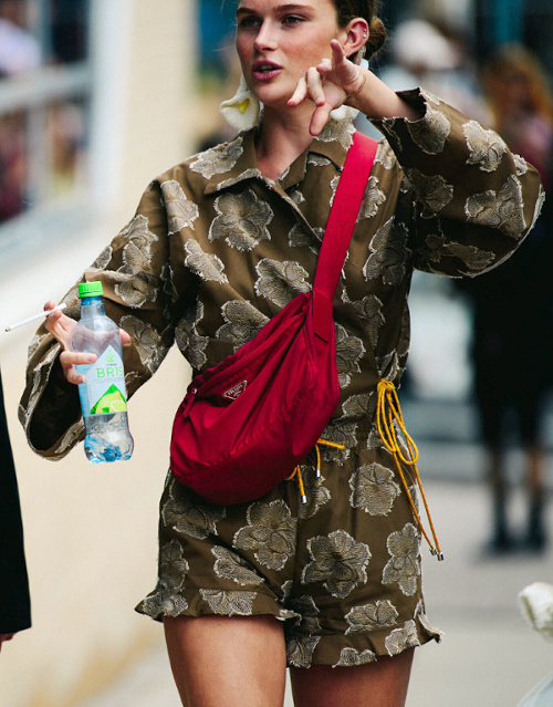 Le gimmick de la chemise nouée autour de la taille évolue et s'applique également désormais à la robe chemise… (voir ici) Contre toute attente, la tendance tie & dye sied bien à l'univers de la maroquinerie (voir ici). Bien équilibré, le style monacal/minimaliste peut sans mal jouer dans la cour des grands (voir ici). Les excès mènent malheureusement souvent au ridicule (voir ici et là). Certaines pré-ados maîtrisent mieux les codes de la saison que leurs aînées... (voir ici) La montée en puissance de la maxi banane portée en travers de la poitrine met d'ores et déjà nos rétines à rude épreuve (voir ici). Le duo caramel/bleu électrique fait des étincelles (voir ici). Les fashionistas s'encanaillent au contact d'épaisses chaînette gourmettes (voir ici). Le bijou tricoté se révèle dans la réalité aussi charmant qu'il semblait abscons sur le papier (voir ici). Porté à plat, le bermuda long n'est pas forcément une bonne idée (voir ici). Les tongs n'en finissent pas de faire des adeptes (voir ici). L'air du temps est apparemment au contrebalancement du volume de ses robes par la petitesse de son sac à main (voir ici).