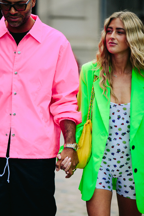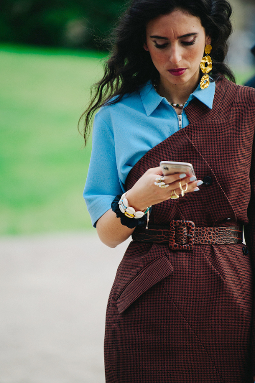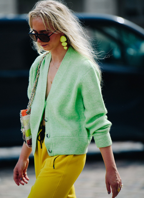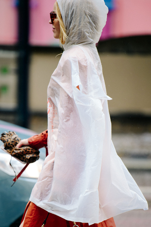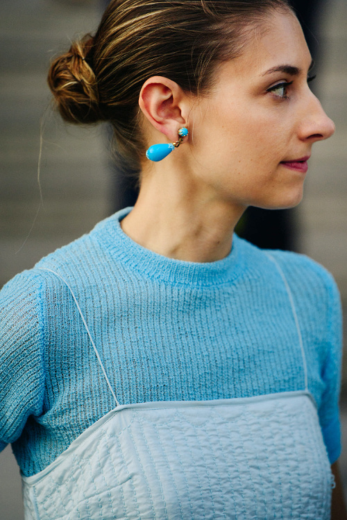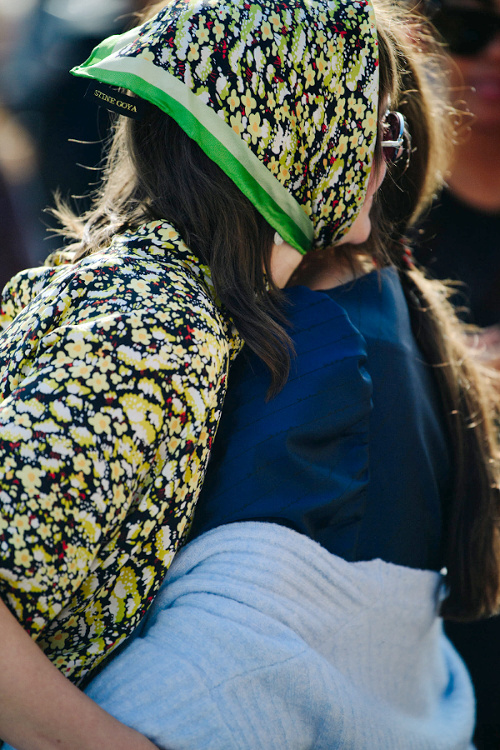 L'intemporel trench opte pour la chaînette esprit gourmette pour actualiser son allure (voir ici). Il y a celles qui coupent l'étiquette H&M de leur petit foulard fleuri et celles qui jugent que l'étiquette augmente la valeur de ce dernier… (voir ici) Travaillé en mode dévoré, l'imprimé léopard acquiert une dimension chic presque sage (voir ici). Le combi-short cycliste fait partie de ces vêtements qui n'existent que dans l'univers parallèle qu'est le fashion cosmos. Et c'est tant mieux… (voir ici) Glisser sous ses robes à très fines bretelles des pièces contredisant la nature sophistiquée et/ou féminine de celles-ci devient un sport international (voir ici et là). On s'interroge sur le bien-fondé de la coordination des asymétries (ici le duo mono boucle d'oreille/mono épaule). L'épais gilet pastel se porte comme un top à part entière, à savoir à même la peau et à peine boutonné (voir ici). Les jupes mi-mollet coupées dans le biais sont définitivement celles qui fonctionnent le mieux avec une paire de baskets (voir ici). Gris et rose stabilo font bon ménage (voir ici). Alcool, cigarette… l'envers du décor d'une vie ultra healthy ? (voir ici, ici, ici et là). Boucles d'oreilles et chignon bas sont souvent les seuls artifices dont a besoin une combinaison en jean bien coupée (voir ici).