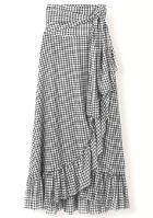 Le sac rock viendra twister la dégaine seventies du look. La longue jupe vichy pourra être remplacée par un modèle ligne A carbone. Un petit bonnet vert forêt pourra venir compléter le look.