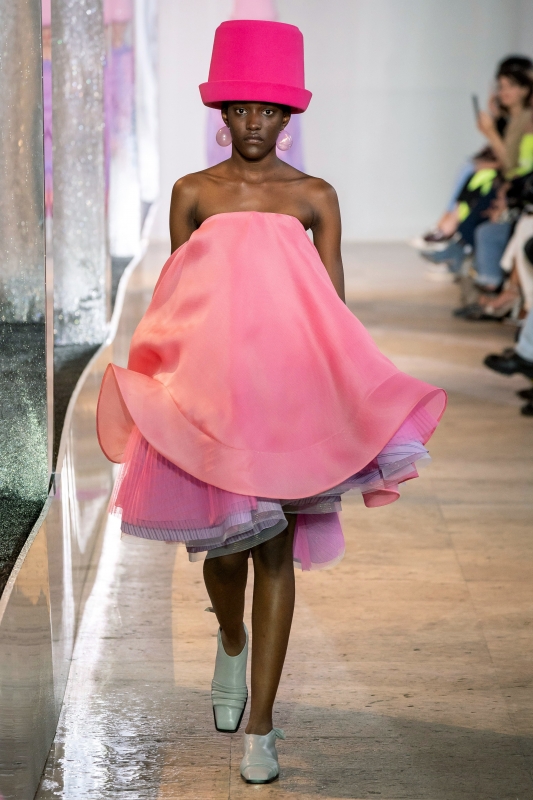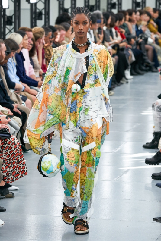 Le départ de Karl Lagerfeld n'ayant rien changé à la valeur esthétique du show Chanel, on peut s'interroger sur l'impact réel du couturier sur les dernières collections. En devenant la caution verte de LVMH, Stella McCartney risque de servir de paravent médiatique aux inepties environnementales du groupe. Chez Givenchy, Clare Waight Keller tenta maladroitement d'assurer les ventes de la griffe en puisant dans les tendances de la saison dernière (entre all-over floral, manches bouffantes et touches de violet). En parvenant à déclencher une vague d'envies via des silhouettes non novatrices puisant leur sève au sein d'une décennie fashion désirable (les seventies), Hedi Slimane réduisit à néant la nécessité de flamboyance vestimentaire et de renouveau permanent. Afin d'asseoir la dimension créative de leur rafraîchissante collection, Rushemy Botter et Lisi Herrebrug (les deux jeunes DA de chez Nina Ricci) se sont apparemment sentis obligés de coiffer leurs mannequins de pots de fleurs aussi conceptuels qu'instagramables (voir ici). Chitose Abe (Sacai) ne parvint pas à magnifier le mix imprimé mappemonde/déconstruction et passe ainsi à côté d'un potentiel coup de génie (voir ici). Pierpaolo Piccioli (Valentino) resta dans sa zone de confort, au point de parasiter la beauté d'ordinaire inhérente à son travail. Les prothèses de pommettes saillantes arborées par les mannequins Balenciaga - voir ici et là - confirment une réalité terrifiante : le visage est le nouveau vêtement, autrement dit un élément modulable à l'envi (à condition d'en avoir les moyens). Il semble aujourd'hui qu'au sein de l'univers de la mode, le message compte bien plus que le fond. Or, aussi vertueux soit-il, ledit message n'en demeure par moins à 90% marketing... d'où un sentiment de supercherie opportuniste particulièrement dérangeant. Les trois mois d'arrêt maladie récemment prescrits à Virgil Abloh - le chouchou hyperactif du fashion cosmos - tendent à démontrer que le rythme auquel sont actuellement soumis les créateurs mène inexorablement au burn-out… Les photos de mannequins Dior évoluant au sein d'une forêt urbaine - voir ici - illustrent à merveille la dichotomie entre communication visuelle et réalité : alors que le défilé se veut être une ode à la nature, force est de reconnaître que la logistique qui fut nécessaire pour créer et accéder à cet événement est elle-même bien peu "éco friendly"... La griffe Coperni parasita ses coupes parfaites par son obsession pour les nouvelles technologies, entre "Wi-Fi bag", présentation aseptisée au sein d'un Apple Store et visuels à l'esthétique réfrigérante (voir ici, ici et là). Continuer à caster des mannequins infiniment maigres semble ne poser aucun problème aux maisons de mode...