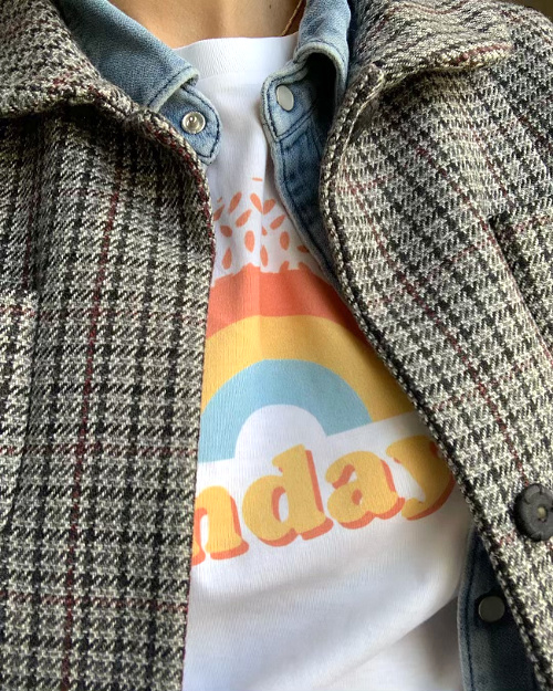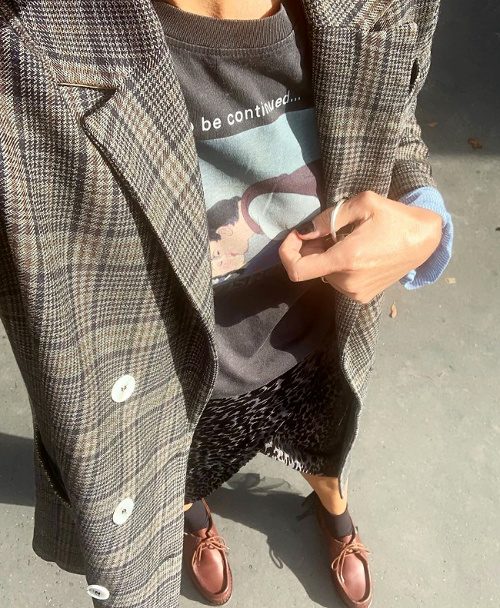 C'est drôle comme il y a quelques années j'aurais jugé son style de mauvais goût et aujourd'hui je me surprend à avoir envie d'essayer de faire matcher la veste en tweed avec le tee-shirt rigolo régressif} et les paillettes avec le classique chic. Comme quoi le style est une question de lâcher prise...