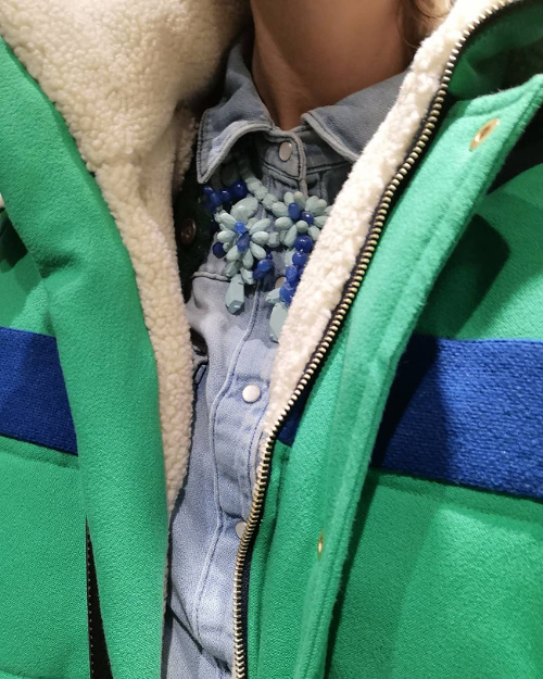 ... bien sûr le look qui m'a fait de l'oeil ... celui avec le col roulé lilas (ma couleur fétiche du moment) et puis à nouveau les colliers colorés comme mon giallostudios pris en couleur chamallow pour assouvir mes envies de pastels.