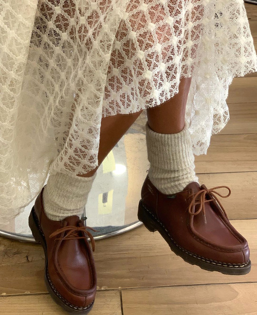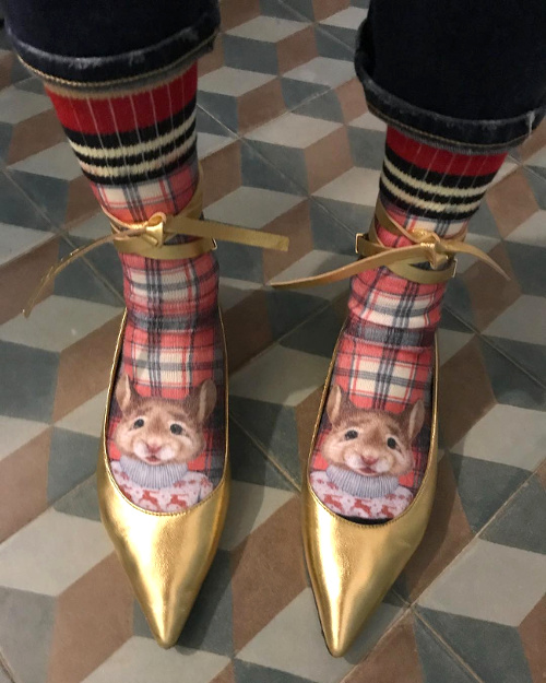 ah ouais cette fille a vraiment un style !! elle a une bonne collection de chaussettes et j'adore les chaussettes (quand j'ai la "fièvre acheteuse" et pas trop d'argent à dépenser, je me prends des chaussettes : de couleur, à paillettes, à noeud ...)