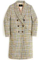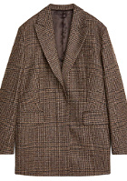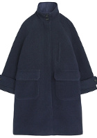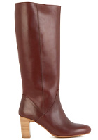 Le slim se roulottera sur la cheville. On pensera à faire froncer une paire de chaussettes caramel à la sortie des boots. Un chignon haut permettra de contrebalancer le volume du manteau. On pourra glisser sous le pull une blouse à col volanté blanche (ou à carreaux caramel).
