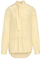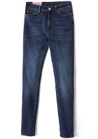 Le col de la blouse se nouera serré comme un petit foulard ras du cou. La blouse se glissera sur le devant du jean. Le jean se roulottera sur la cheville. On pourra porter pour une paire de socquettes jaunes ultra pâles. Le bonnet pourra être remplacé par une casquette bleu marine.
