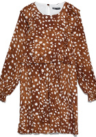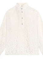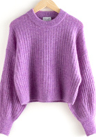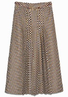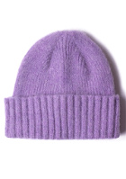 La blouse se glissera dans la jupe. Le style bourgeois/seventies se verra atténué par le blouson unisexe. La teinte lilas du bonnet dynamisera les harmonies de coloris marron.