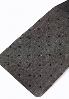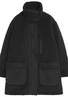 On joue ici sur les oppositions entre volume massif du manteau et délicatesse du serre-tête, mais aussi entre robe courte légère et boots roots. On pourra remplacer les collants plumetis par des collants en laine noire.