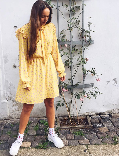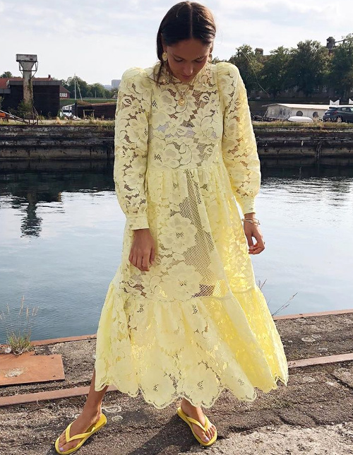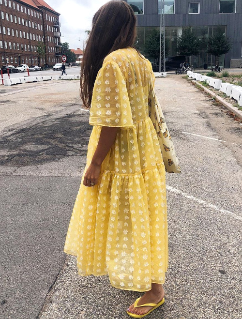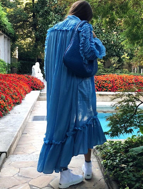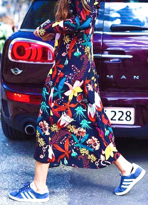 Dédramatiser les volants d'une ample robe bleue au contact d'une paire de baskets blanches montantes (voir ici). Contrebalancer le volum d'une ample mini robe via une paire de ballerines nouées sur la cheville (voir ici et là). Atténuer l'originalité d'un duo de pièces en le travaillant en camaïeu de teintes (voir ici). Se mettre sur son 31 pour déguster une assiette de frites (voir ici). Télescoper gilet d'homme, imprimé désuet et santiags basses (voir ici). Structurer une ample robe longue en lui associant un sac rigide rectangulaire (voir ici). Mixer robe chic imprimée et cabas fantaisie (voir ici). En été, porter ses robes longues les plus élégantes avec une paire de tongs ton sur ton (voir ici et là). Dénicher des petits pulls pour princesse casual susceptibles "d'upgrader" n'importe quel look (voir ici et là). Faire la part belle au tricot fait main afin d'insuffler âme et densité à ses tenues (voir ici). Mixer baskets esprit rétro et robe aux larges imprimés fleuris dévoilant la cheville (voir ici). Soigner sa coiffure même lorsque l'on reste en robe de chambre (voir ici). Réchauffer ses longues robes imprimées au creux d'une doudoune sans manches peu volumineuse (voir ici).