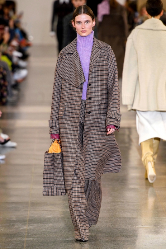Après avoir vu ces dernières semaines les looks Céline automne/hiver 2019-2020 déclinés tous azimuts, difficile d'être encore attiré par une jupe à plis creux prince de Galles. Autrement dit, celles qui voudront continuer de flirter avec les années Nixon auront tout intérêt à faire preuve de subtilité en puisant son inspiration non pas dans la dernière collection d'Hedi Slimane, mais plutôt au sein de la grammaire chromatique de cette décennie. On pense tout particulièrement au mix bordeaux/beige/bleu marine (Françoise), qui diffusera juste ce qu'il faut d'effluves rétro pour inscrire une tenue 2019/2020 dans l'air du temps.