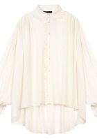 Le jean se glissera dans les bottes. La blouse se portera rentrée sur le devant du slim. On pourra ajouter une ultra longue écharpe noire dont on laissera un pan pendre sur le devant.