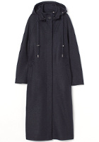 Les manches de la chemise se porteront roulottées. On pourra ajouter au look une montre d'homme dorée. On fera légèrement blouser la chemise dans le pantalon. On n'hésitera pas à faire passer l'écharpe sous la capuche et à la nouer ensuite sur le devant du manteau fermé.