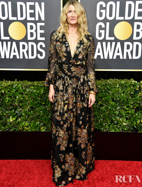 Entre plissés évoquant le chiton d'une déesse de l'Olympe et corsage esprit Cinquième Élément décliné en mode baroque, la tenue Mary Katrantzou de Cate Blanchett renouvelle avec audace la notion de glamour hollywoodien (voir ici). Marier des pois de différents diamètres est une idée aussi brillante que difficile à mettre en pratique, comme nous le prouve - à ses dépens - Zoë Kravitz avec sa robe Saint Laurent (voir ici). En arborant un look pour le moins insolite (voir ici), Kerry Washington semble envoyer un message à la profession. Reste à savoir lequel… Délicatement étrange et élégamment novateur, le travail d'Iris van Herpen gagne à être vu sur les tapis rouges (voir ici et là). En mêlant robe bohème et chevelure légèrement ondulée, Laura Dern réussit à faire rimer "fraîcheur" avec "Golden Globes"… (voir ici) Si en matière de prêt-à-porter télescoper les genres s'avère souvent bénéfique, il en va rarement de même lorsqu'il s'agit de toilettes d'apparat (voir ici). Comment peut-on choisir d'opter pour une toilette manquant à ce point de subtilité ? C'est la question qui nous hante face à la robe Gucci de Salma Hayek (voir ici). Que l'on apprécie ou non son fourreau Roland Mouret, force est de constater que Reese Witherspoon arbore une allure plus qu'irréprochable (voir ici). De toute manière, le capital sympathie de l'actrice est tel qu'il est quasiment impossible d'émettre la moindre critique vestimentaire à son égard… Mix de couleurs raté, lien noir incongru, reflets satinés peu seyants, pan frontal bien trop imposant... La liste des choses qui ne fonctionnent pas au sein de la tenue Gucci de Sienna Miller est aussi longue qu'attristante (voir ici).