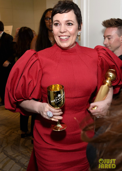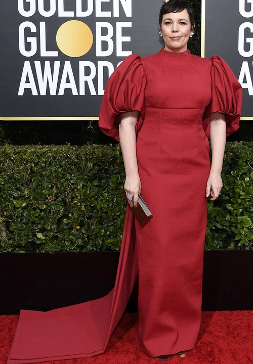 Le meilleur (ironie bien sûr) pour la fin, la robe Bibendum d'Olivia Colman, heureusement qu'elle a une coupe courte pour contrebalancer.