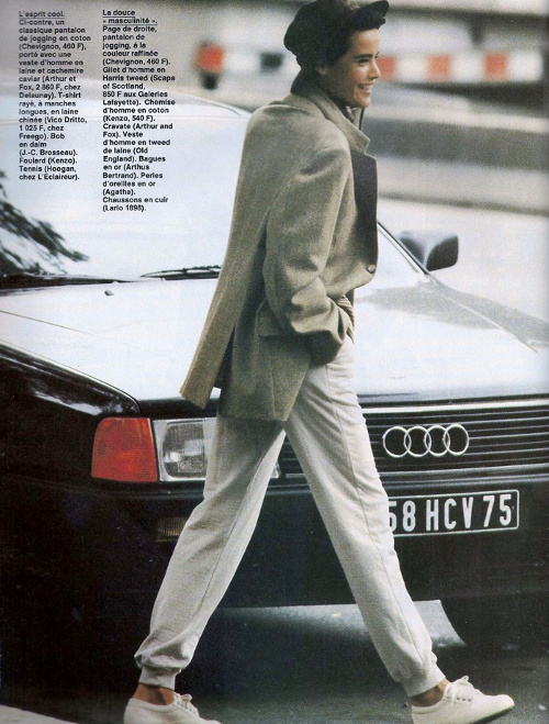 Casualiser une slip dress en chaussant une paire de tongs (voir ici). Faire de l'ample robe pull un vêtement doudou par excellence (voir ici). Dérider un look casual monochrome au contact d'une paire de baskets blanches (voir ici). Mixer tee-shirt bleu céruléen, jean délavé légèrement destroyed, baskets blanches, bronzage caramel et bonne humeur (voir ici). Féminiser ses looks amples via un bandeau turban (ou un serre-tête turban) (voir ici). Télescoper les carreaux (voir ici). Marier bleu fumée, violet et vert forêt (voir ici). Penser à s'offrir une nouvelle paire de Gazelle (voir ici et là). Réchauffer ses jupes en satin d'un épais pull douillet (voir ici). Mixer noir et marron (voir ici et là). Associer casquette de marin, pull trop grand et air mutin (voir ici). Faire froncer ses chaussettes dans ses baskets (voir ici).